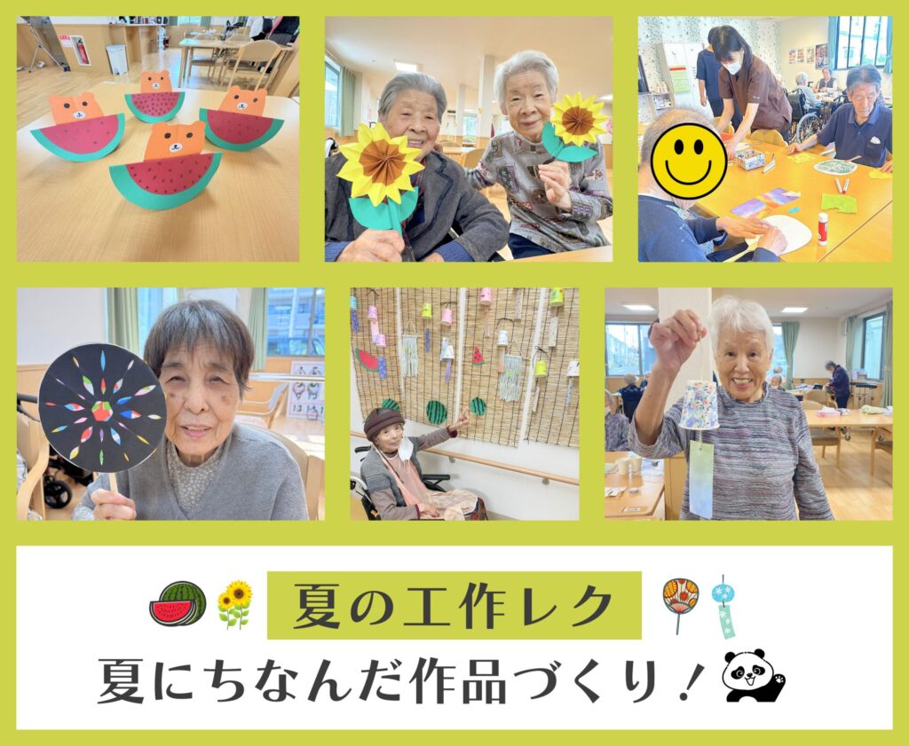 利用者様と一緒に夏にちなんだ作品作りをしています。