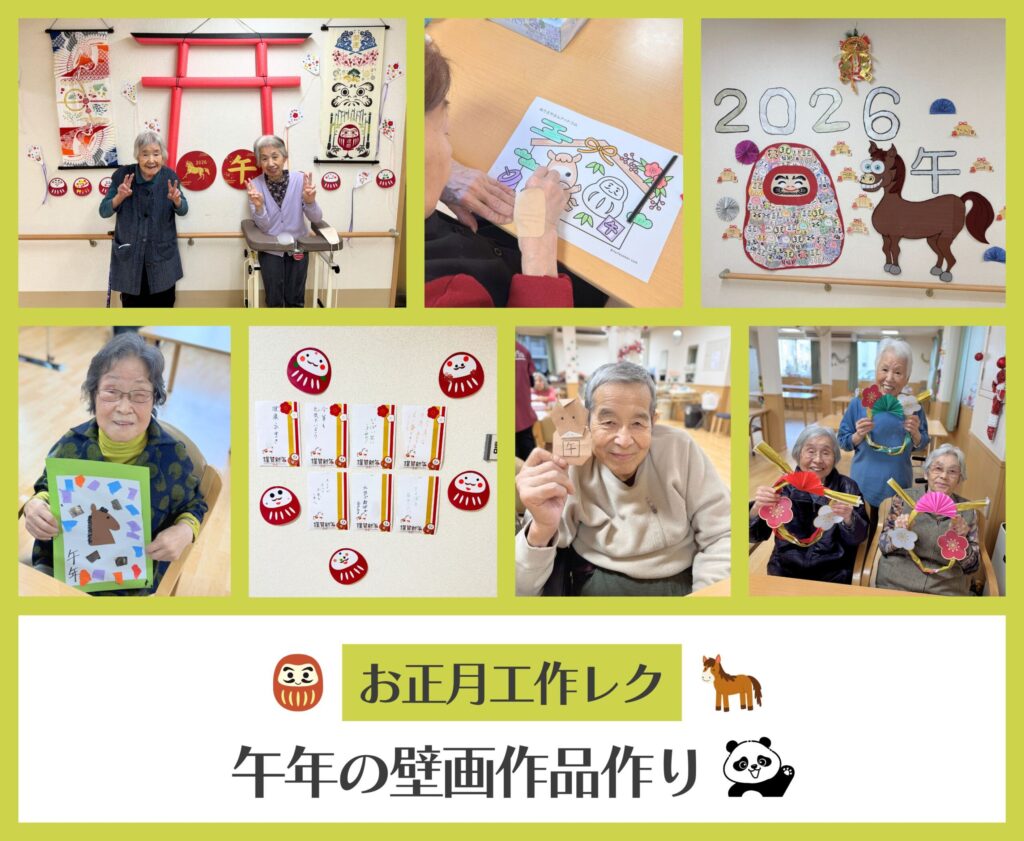 みなさんで午年にちなんだ壁画や作品作りに励みました!