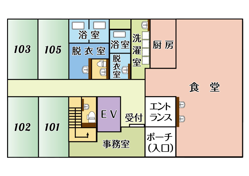 | 施設内設備 | 浴室(個浴1室/機械浴1室/ストレッチャー浴1室)・脱衣室・共用トイレ |