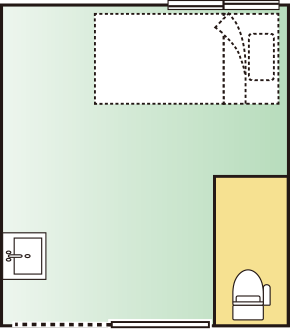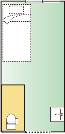 | 設備 | ナースコール・トイレ(ウォシュレット付き) 洗面(温水)・エアコン・照明 |